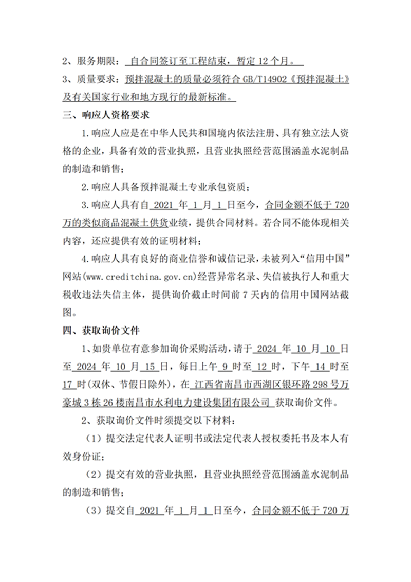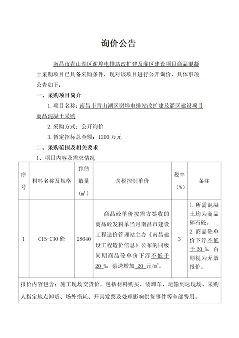 南昌市青山湖區(qū)謝埠電排站改擴建及灌區(qū)建設項目商品混凝土采購項目詢價公告